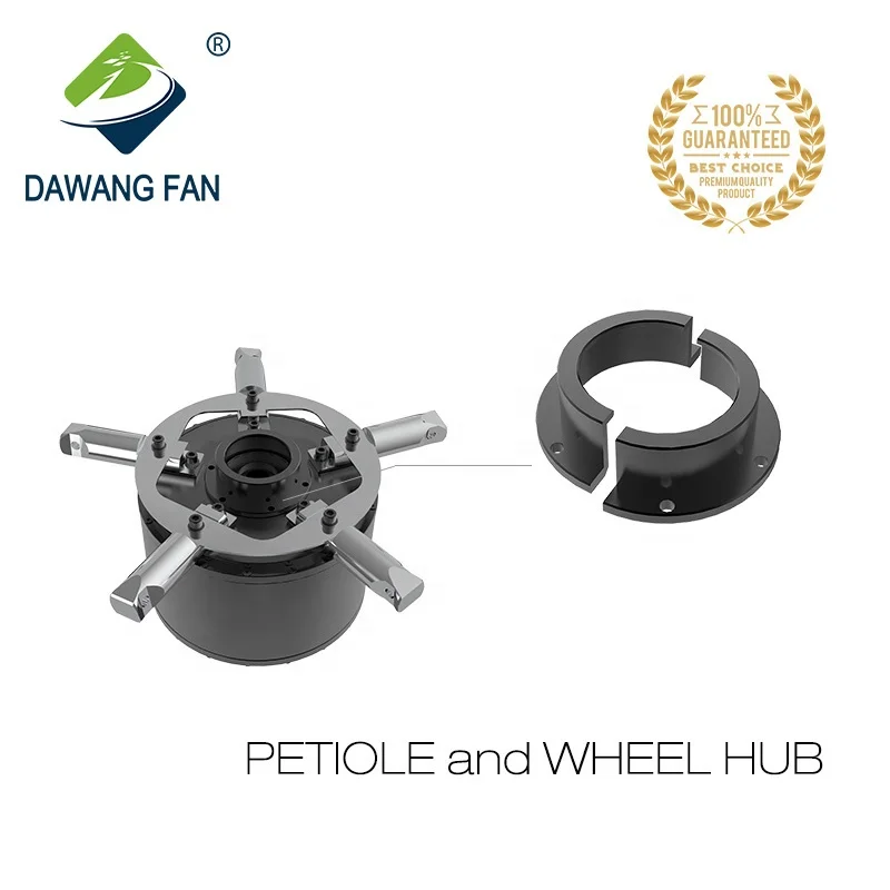Соединение шип-паз: выпуклый стебель с вогнутым демпфирующим устройством образует соединение, которое устраняет центробежную силу, возникающую на лопастях при работе вентилятора, а также силу сдвига при пуске и остановке. Поперечный винт расположен в том же направлении, что и траектория движения вентилятора, чтобы избежать срезающих нагрузок, что гарантирует, что лопасти не сломаются, и полностью устраняет возможные риски для безопасности.